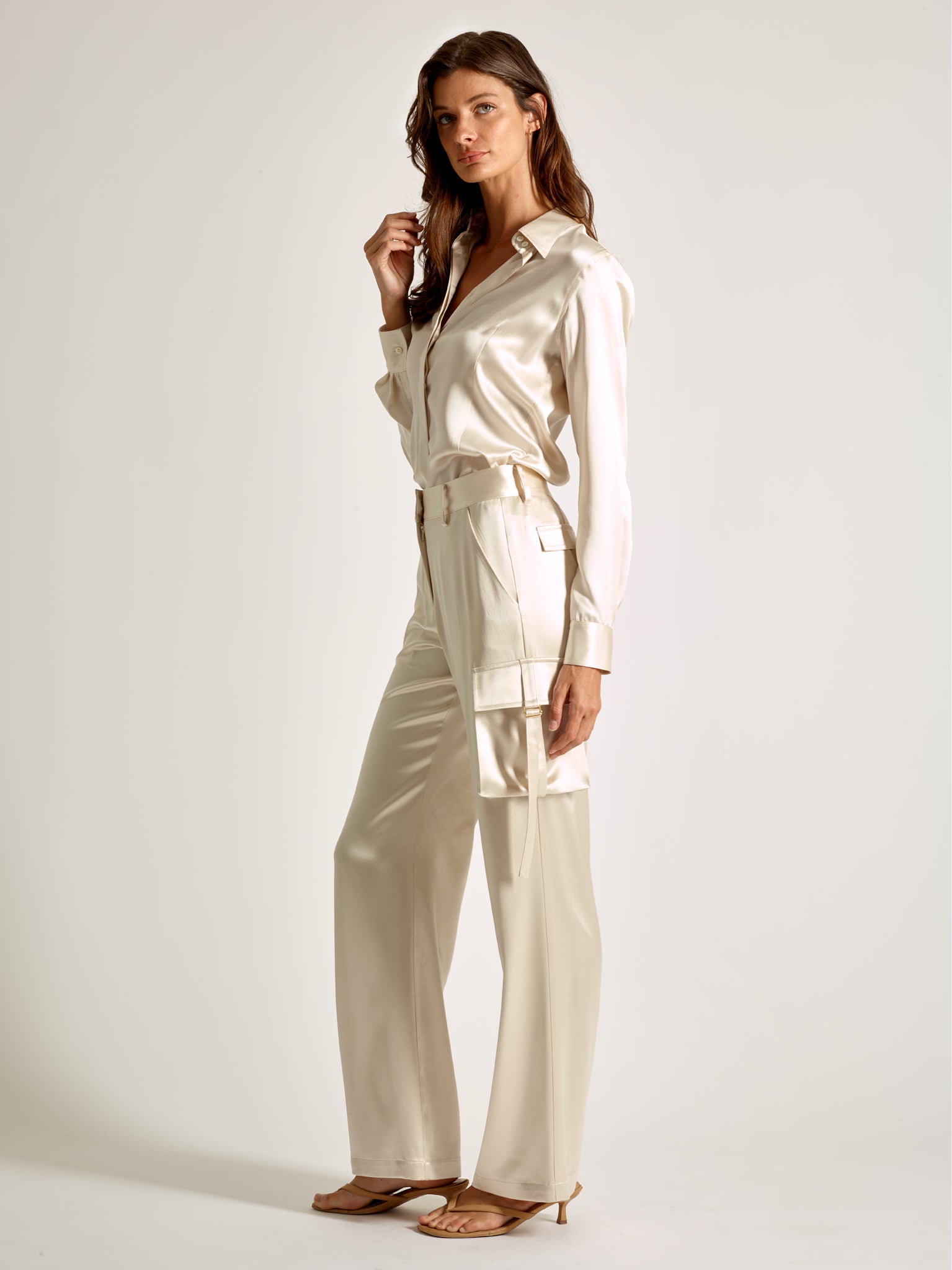 Ivory Silk Cargo Pants